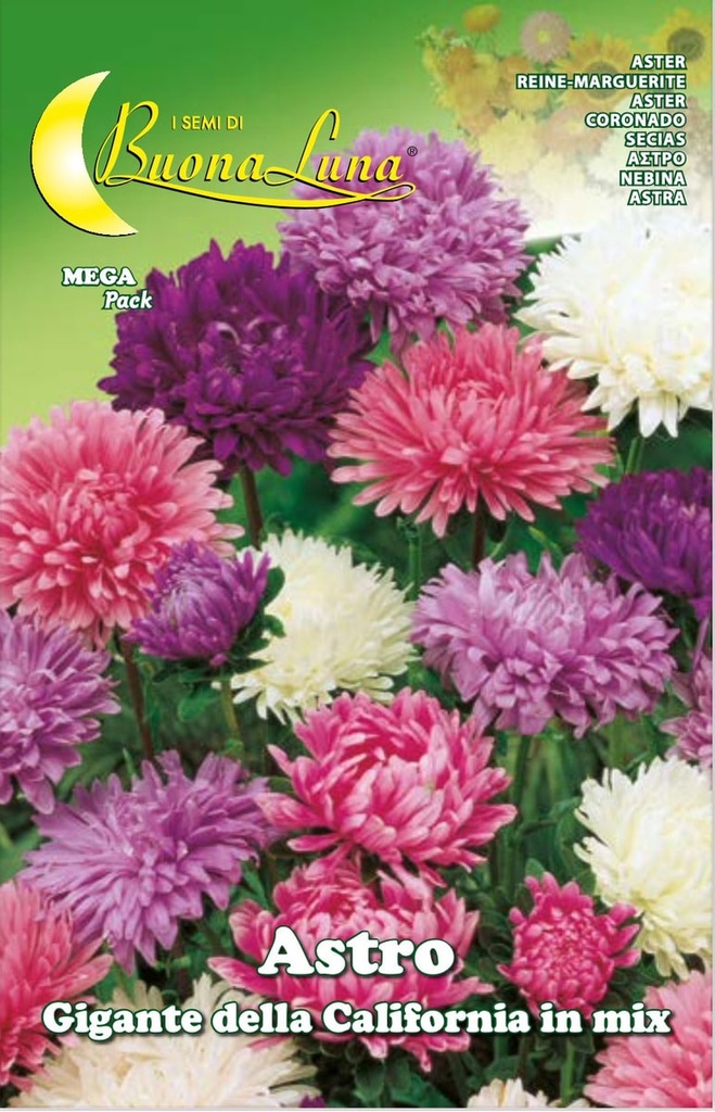 El paquete (sobre) de California Giant Astro contiene 1 gr. de semillas, equivalentes a unas 420 semillas, con las que es posible crear de 42 a 60 puntos de floración colocando 7/10 semillas en cada punto.
